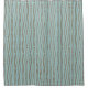 This shower curtain has a geometric design of sort of flat-ended ovals repeating across the design in brown on a field of pale blue.