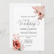 Set the tone for your elegant celebration with this sophisticated wedding invitation featuring delicate bouquets of pale crimson red peonies, dusty pink roses and earth-toned flowers.