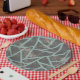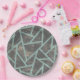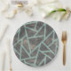 Pale green and grey mosaic pattern paper plate