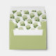 Sage green and white wedding return address envelopes are printed with your return address and a white and green antique hydrangea flower pattern on the inside.