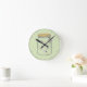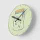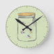 Pale Green Rough Sketch Fireflies in Mason Jar Round Clock