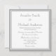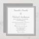 This invitation is elegantly designed with a simple and clean pale grey theme in mind, with multiple fonts adding a typography design that everyone is sure to love. Personalize with your information, or customize it by clicking the "customize" button to change any of the elements. Back of invitation is a matching shade of pale grey.