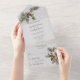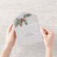 Capture the magic of a winter wonderland with this exquisite All-in-One wedding invitation, carefully crafted to embody the elegance and charm of your special day. Let the charm of pine branches, pine cones, holly and falling snow weave the story of your love into a magical tapestry that will leave an indelible mark on the hearts of all who receive it. The All-in-One wedding invitations are both beautiful and practical by combining the wedding invitation with an easy to remove perforated RSVP postcard. They are also quick and easy to prepare for mailing. Simply address the invitation, fold the back flap and seal with the included clear stickers. Once your guests receive the pre-addressed invitation they simply tear off the perforated RSVP card and drop it in the mail.
