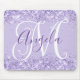 Pale Lavender Glitter Elegant Script Monogram Mouse Pad