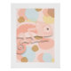 This print features a whimsical, pale peach chameleon against a soft, light-toned background. The colour palette is gentle and ethereal, with abstract shapes in muted shades of pale pink, light blue, and sandy golden-brown scattered throughout. The layered, paper-cut style of the art creates a sense of depth and a clean, modern aesthetic. This design is perfect for those who appreciate soft, neutral colours with a playful, artistic twist. Create a twin set with "Blue-grey Chameleon."