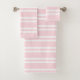 Calm and fresh, this feminine striped pattern looks great in a home, apartment or dorm bathroom. The alternating thick and thin stripes add a sophisticated touch. Get sets in different colours for different people to know whose towel is whose! Great housewarming gift for a new apartment to brighten up the inevitable white walls.