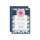 You can pesonalize the text on this light pink gerbera daisy, navy blue damask floral wedding invitation. With changes to the text, this would make a really nice invitation for any other special occasion as well. You can also change the paper type. There are a variety of paper types to choose from and this design would look great with many of them. To change the text, use the personalize option. For more extensive changes, such as changes to the font, font colour, font size, text layout or background colour, use the customize option. The colours on this invitation are navy or marine blue, pale pink, and white. NOTE: This is a flat printed design without any raised or 3D embellishments.