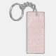 This keychain features a frosty pale pink urban grunge background with a line art drawing of chrysanthemums in pink and customizable and a name in the corner. Original art from Dogwood & Thistle.