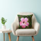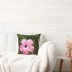 Ce coussin tressé en coton personnalisé dispose d'un grand hibiscus rose clair d'un côté et d'une couleur solide de l'autre côté (vert illustré par exemple, mais ce côté est personnalisable, il est donc possible de le changer).
