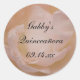 Customize these elegant Pink Rose Quinceañera Favour Tag Stickers with the personal name of the 15 year old birthday girl and date of her sweet fifteen b-day. These classy custom flowery adhesive party favour tags feature a close up floral photograph of a pale pink rose flower blossom with curly petals.