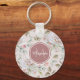 Pale Pink Rose Pattern With Monogram and Name Keychain