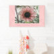 This awesome banner features a beautiful photograph of a pale pink sunflower. The sunflower is naturally pink and the petals have a pale pink outer ring and a darker pink inner ring. The middle where the seeds are is black. This photograph was taken in a garden.