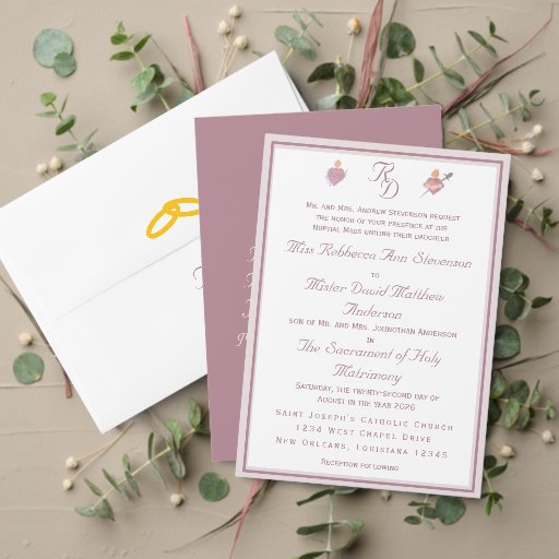 Pale PinkTwo Hearts Catholic Wedding Invitation