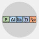 Here we have the word Palestine made up using the symbols of elements Phosphorus, Aluminum, Einsteinium, Titanium, and Neon from the periodic table. This is a colourful design for anyone that loves or comes from Palestine, especially if they also have an interest in chemistry or science!