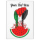 Palestine Flag on Revolution Fist Symbol of freedom coming out from a Watermelon. In occupied Palestine, watermelon is a symbol of resistance. With its colours mirroring the Palestinian flag, the fruit can be seen from the stone walls of Gaza to the galleries of Ramallah, hinting at the political history of a cherished summer fruit. As the Israeli occupiers supremacy did not allow the Palestinians to expose their own Red white black and green original Flag.