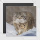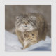Witness the rare and captivating presence of an endangered Pallas Cat or Manul basking in the snow on a winter day. With piercing eyes, thick fur, and delicate whiskers, this wildcat radiates awe-inspiring beauty