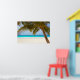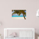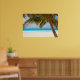 A photograph of a solitary white sandy beach framed by a palm tree. The perfect holiday place to relax and unwind. This image is available on a variety of other products, just click the link below the photo near 'About this Design'.