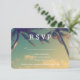 Palm beach wedding RSVP response cards for reply. Classy vintage photo of exotic Island in the caribbean or other tropical location. Give your guests a way to respond if they are coming to your elegant destination wedding. Beautiful retro image with stylish script typography template. Part of trendy matching collection set pack with reception invitations and more for bride and groom. Customizable text and paper quality. Special rounded cutout corners optional. R.S.V.P. Accepts with pleasure / Declines with regret. Gorgeous seaside view with waving palm trees near the ocean and blue sky. Upload your own pretty stock picture to this template optionally.