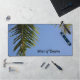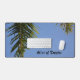 This tropical photographic desk mat has just a hint of the Tropics with palm fronds against a beautiful clear blue sky. Personalize with your Name or your own text. Plenty of space and options to customization.