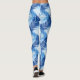 Leggings in a print of overlapping palm leaf silhouettes, in shades of cobalt blue, navy / indigo, and white, against a light sky blue background