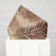 Tissue paper in a print of overlapping palm leaf silhouettes, in shades of chocolate brown and camel tan, against a light tan / beige background