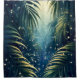 Elevate your bathroom decor with lovely shower curtain featuring a watercolor illustration with a peaceful scene, where silhouettes of palm leaves are softly illuminated by moonlight, and twinkling fireflies create a magical ambiance. Transform your daily routine into a soothing escape inspired by nature's beauty.