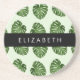 Palm Leaves, Tropical Pattern, Your Name Coaster
