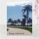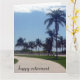 Happy retirement card featuring relaxing palm lined pathway - fully customizable. Large size perfect for office farewells.