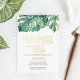Tropical yet elegant personalized calligraphy invitations frames your event details with a border of simple gold confetti and tropical greenery over a crisp white background. Your event details are set in an simple sans serif and hand lettered script type in real gold foil. Perfect for a Palm Springs Beach Bachelorette Weekend Girl's Trip. To see more cute wedding invitations and bachelorette party invitations and matching itineraries like this visit Do Tell A Belle on Zazzle at www.zazzle.com/dotellabelle