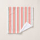Motif avec des illustrations de maisons de style moderne du milieu du siècle, flamants roses, cactus, palmiers feuille et design moderne du milieu du siècle. Le linge de toilette est de style rayé rose et vert. La serviette à main est ornée d'un motif inspiré du milieu du siècle sur un arrière - plan bleu clair.