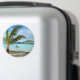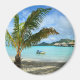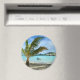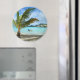 Palm tree and overwater resort round magnet