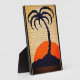Image printed on plaque is a photo of an original tapestry crochet wall hanging designed handmade and Copyright © by published designer Delores Chamblin. The picture of the unique handcrafted palm tree silhouette and bright orange sun is reproduced on the plaque.