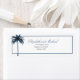 A blue and white Palm Tree elegant personal return address labels. An elegant palm tree is over the names.