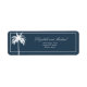A blue and white Palm Tree elegant personal return address labels. An elegant palm tree is over the names.