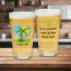 Cartoon illustration of a palm tree. Custom text on both sides.