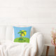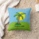 Cartoon illustration of a palm tree. Custom background colour. Custom text on both sides.