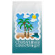 Celebrate Christmas on the beach with this cool design of colourful lights on palm trees, with ornaments on an aqua turquoise teal beach scene.