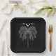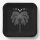 White detailed palm tree line drawing with moon phases. A mysterious tableware design for your next seance or night beach theme party.