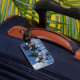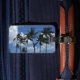 Palm tree scenery on a luggage tag that you can personalize with your information before ordering