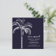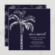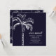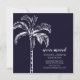 Faire-part tropicale mobile avec un palmier posé sur un arrière - plan bleu noir avec un palmier de coordination.