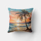 Palm Tree On Tropical Beach At Sunset Throw Pillow