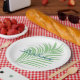 Palm Tree Sage Green Watercolor Leaves Name Paper Plate