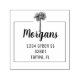 decorative sketched palm tree on the top enclosed by light elegant border. Personal information in elegant font with family name on the top and return address displayed beneath.