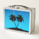 Palm Tree Silhouette Against Evening Blue with Sta Metal Lunch Box
