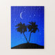 Palm Tree Silhouette, Evening Blue with Stars Jigsaw Puzzle