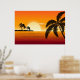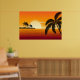 Featuring a breath taking view of a orange sky with some black Palm Tree Silhouette and the sun rising up.this is a beautiful photo on this poster