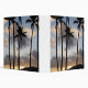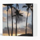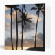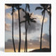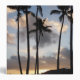 Stunning scenery of Hawaii at twilight with the fading light creating silhouettes of the palm trees and coast line.