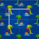 Cool and customizable fabric with little palm trees and sunset on sea pattern. You can change the background colour and rescale the pattern. Also you can add some personalized text. Just a fine item for summertime. Designed by René Bui