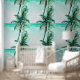 Palm tree turquoise ocean coastal seamless pattern wallpaper