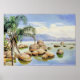 Marianne North's popular painting, Palm Trees and Boulders in the Bay of Rio, Brazil.